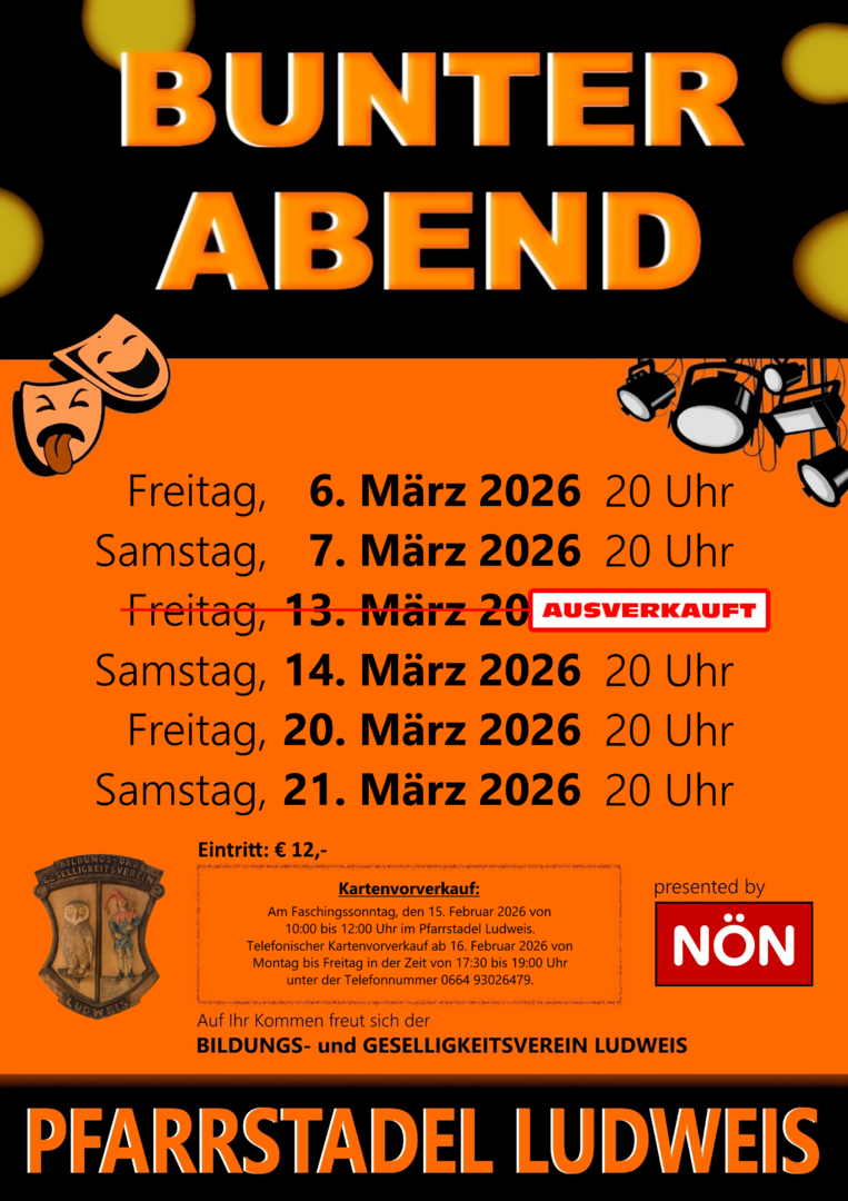 Folgend finden Sie alle Informationen zum 51. Bunten Abend bei uns im Ludweiser Pfarrstadel :)
